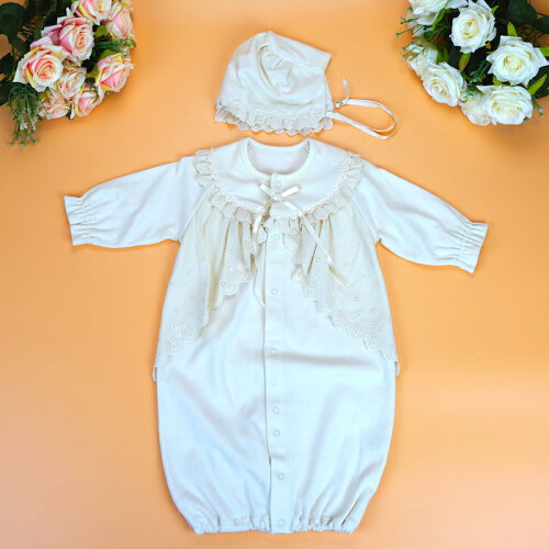 送料無料 日本製 オーガニックコットン ベビードレス ベビー帽子 2点セット オールシーズン 赤ちゃん 新生児 お宮参り 退院時