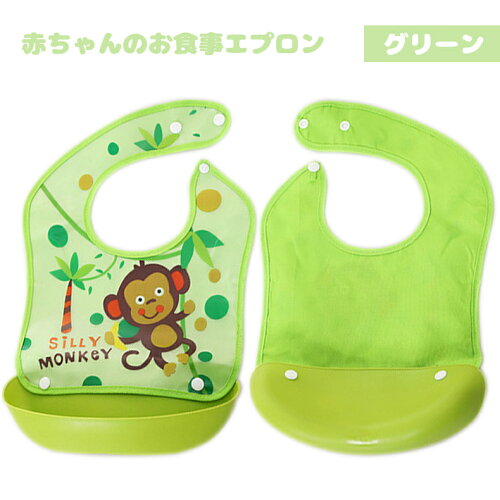 お食事エプロン よだれかけ ビブ スタイ よだれカバー かわいい カラフル 動物パターン 新生児 ベビー 赤ちゃん baby 男の子 女の子 ポケット 出産祝い ギフト プレゼント グリーン